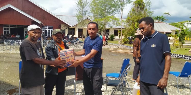 Dekai,nokenwene.com— Umat Katolik wilayah Santo Yosef Dekai kabupaten Yahukimo membawa bantuan bagi pengungsi konflik horizontal di Dekai.