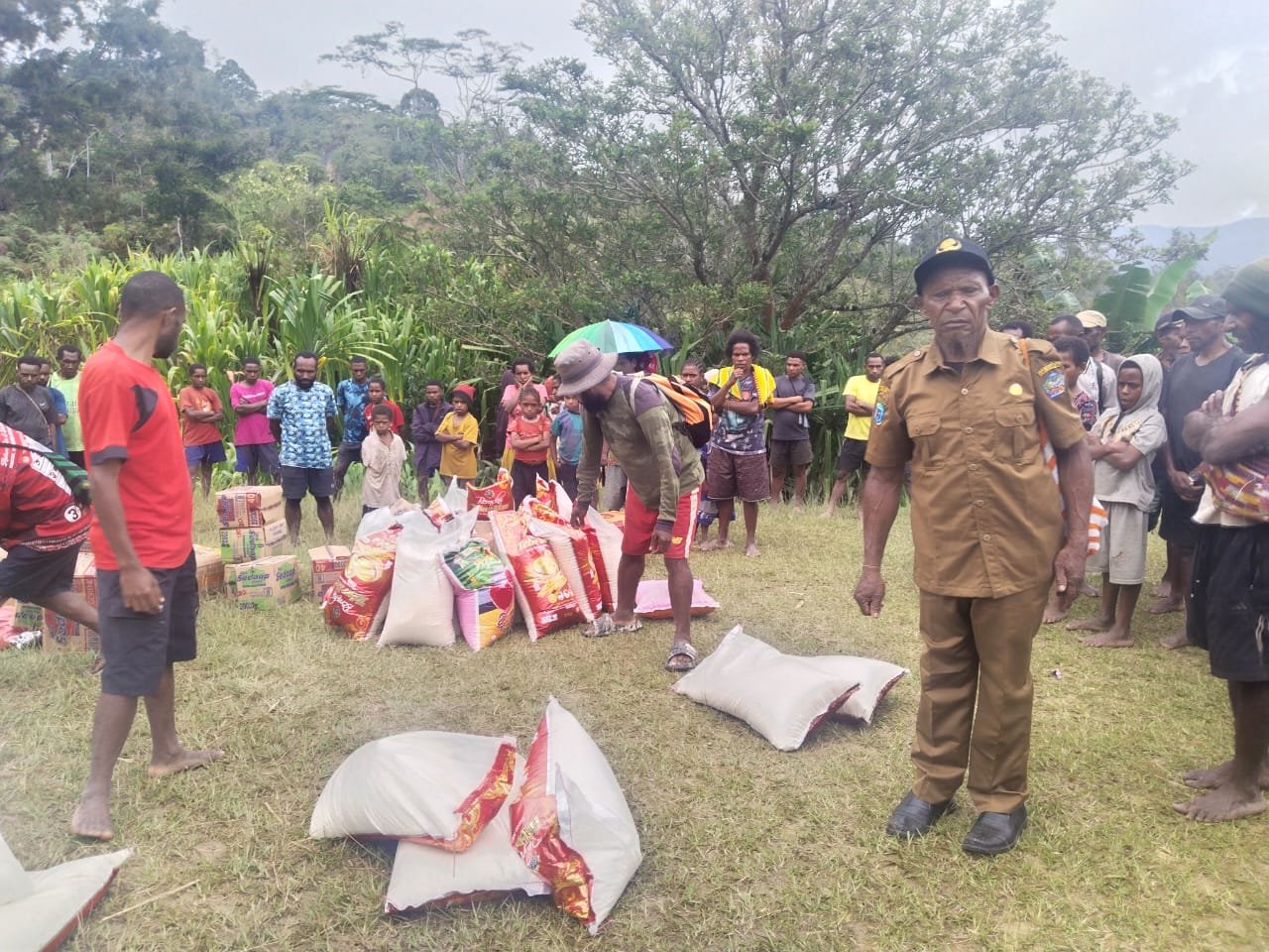 “Setelah kami tiba kami bagikan kepada 9 Jemaat diantaranya beras, Minyak, Garam, Feksin, Mie dan bantuan lainnya. Sesui apa yang diperintahkan 01 dan 02 (Artinya Bupati dan Wakil Bupati) Jadi masyarakat mereka senang. Mereka bilang kami kesulitan saat momen natal ini merayakan bagimana kuatir tetapi hari ini ada Jawab, Terima Kasih Tuhan, Terima kasih Bapak Kepala distrik dan Terima kasih Bapak Bupati jadi mereka gembira sekali,” Kata kepala distrik.