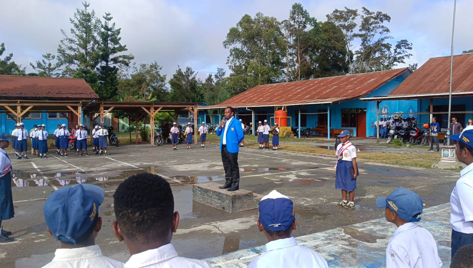 Wamena, nokenwene.com – Ketua KNPI Papua Pegunungan, Kalvin Penggu, ST.,PIMPIN upacara perdana awal semester dan tahun ajaran baru 2026 di lingkungan Yayasan Biji Sesawi Indonesia (YBSI), Wamena, pada Senin, 26 Januari 2026.